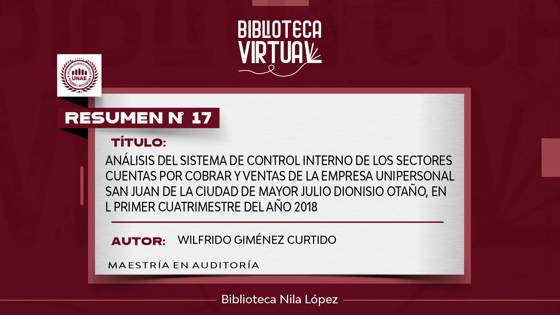 PROGRAMA DE POSGRADO: MAESTRÍA EN AUDITORÍA Y CONTROL