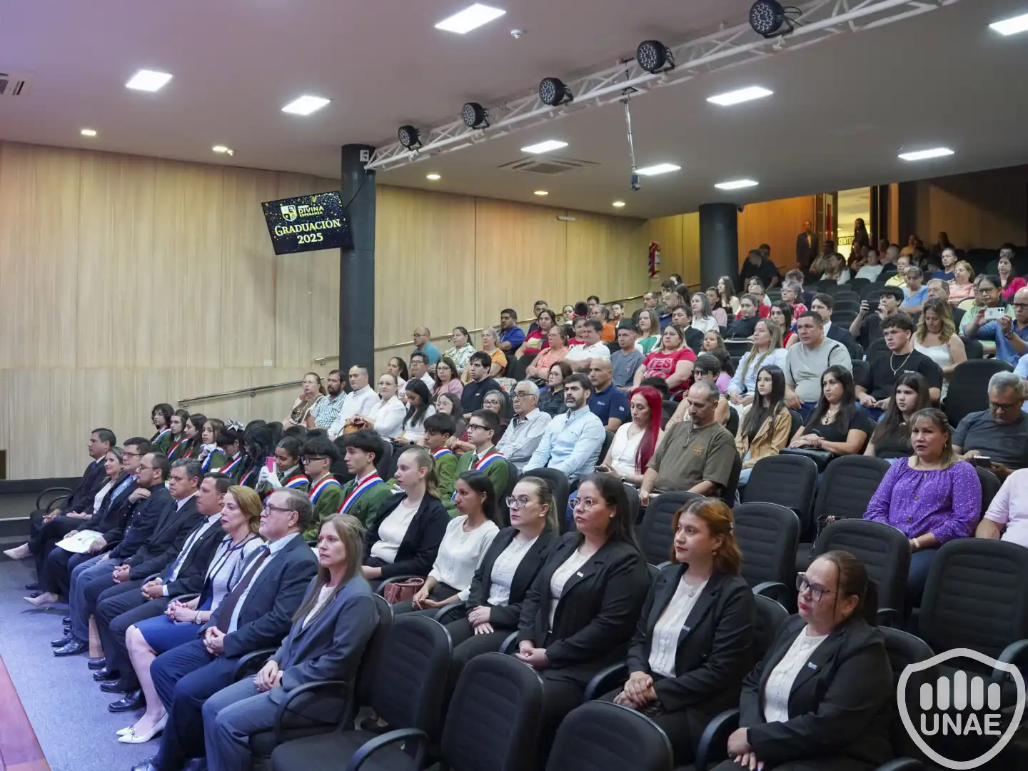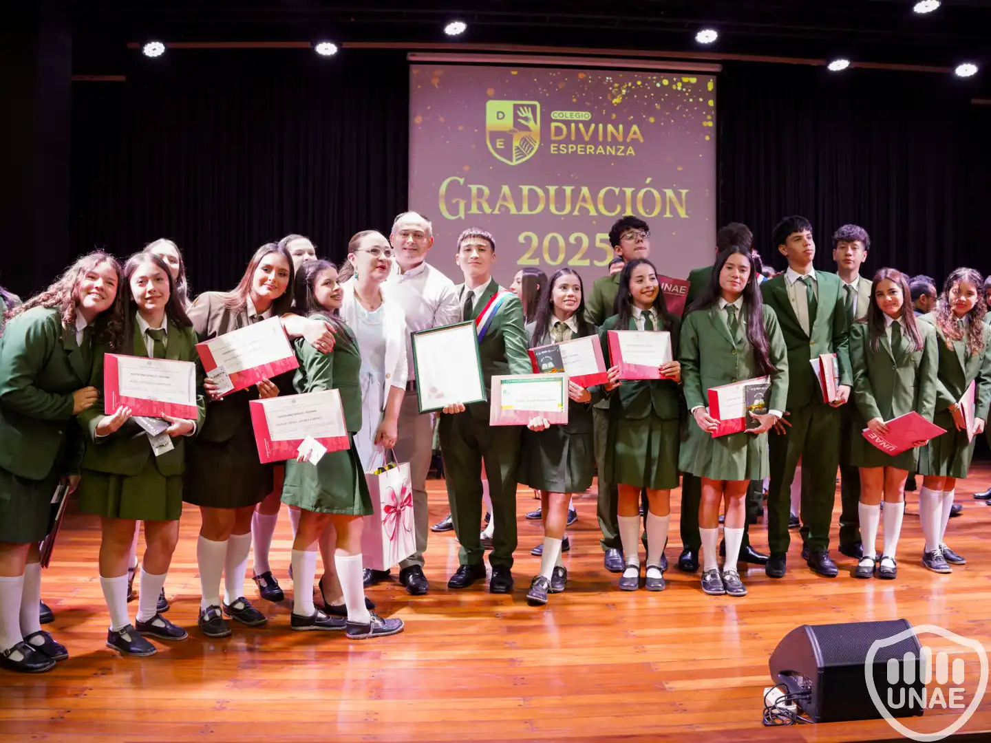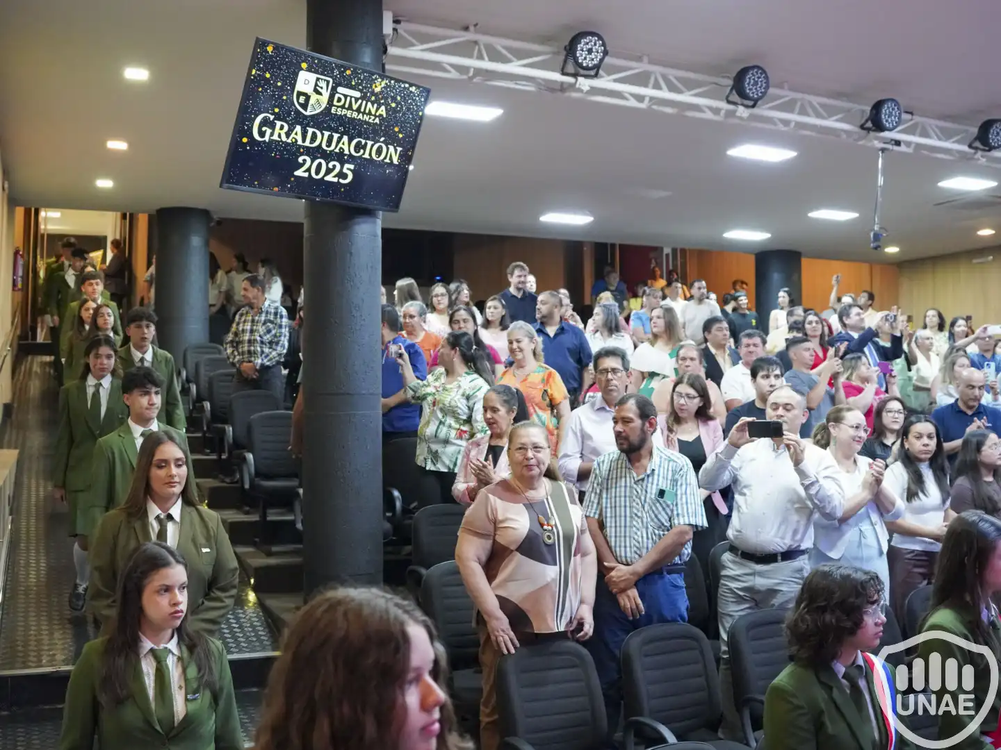 El Colegio Privado Divina Esperanza, perteneciente al Complejo Educativo UNAE, llevó a cabo el Acto Solemne de Graduación de la Promoción Nacional 2025, denominado “Sesquicentenario de la Epopeya Nacional: 1864–1870. Escolástica Barrios de Gill – Homenaje al Centenario de la Guarania”, en el Auditorio Central de la Universidad Autónoma de Encarnación (UNAE).