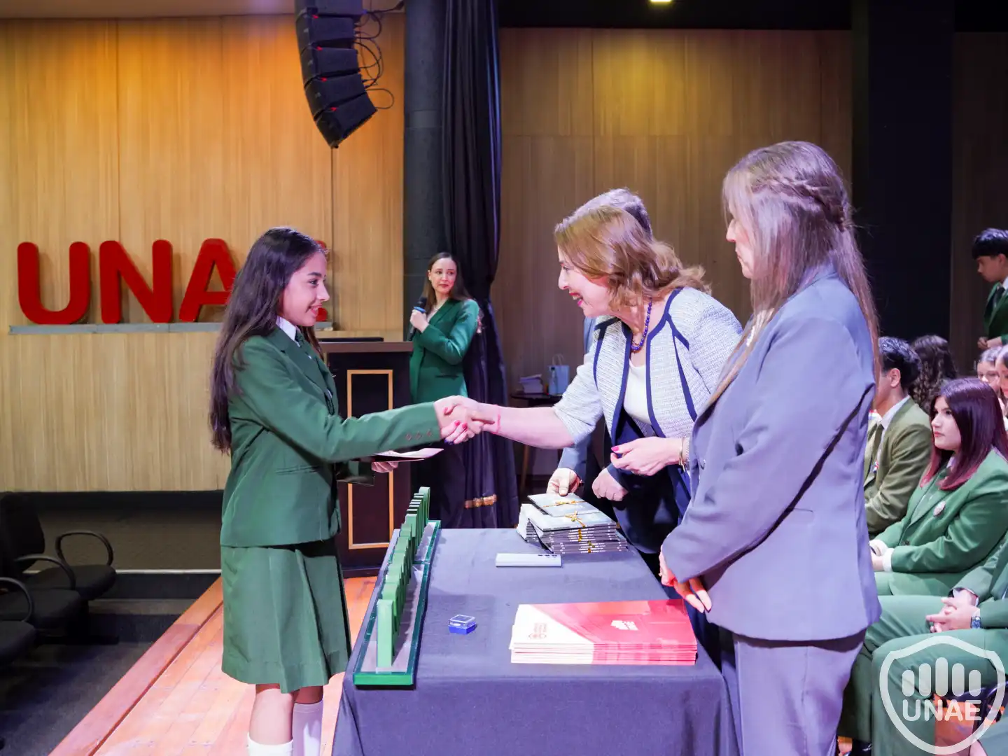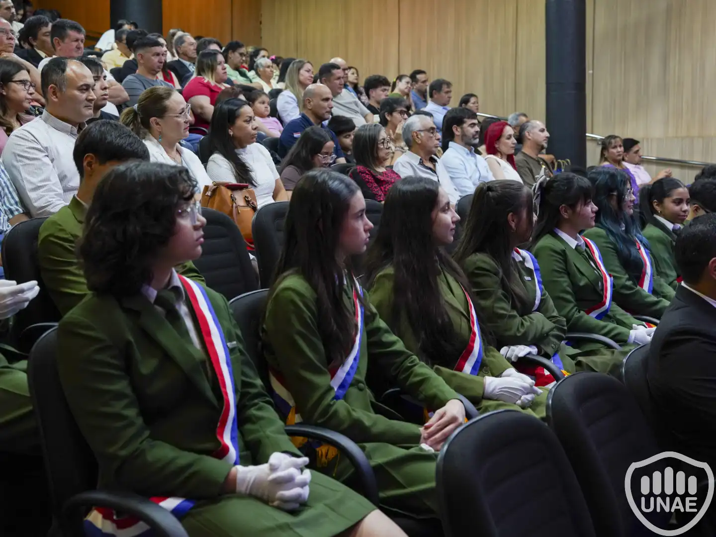 Durante el desarrollo del evento, la Dra. Nadia Czeraniuk, Rectora del Complejo UNAE, dirigió un mensaje institucional a los presentes. Asimismo, hicieron uso de la palabra los mejores egresados: Francisco Alejandro Velazquez Romero, en representación de la Educación Escolar Básica, y Hernán Ezequiel Flick Zarza, por la Educación Media.