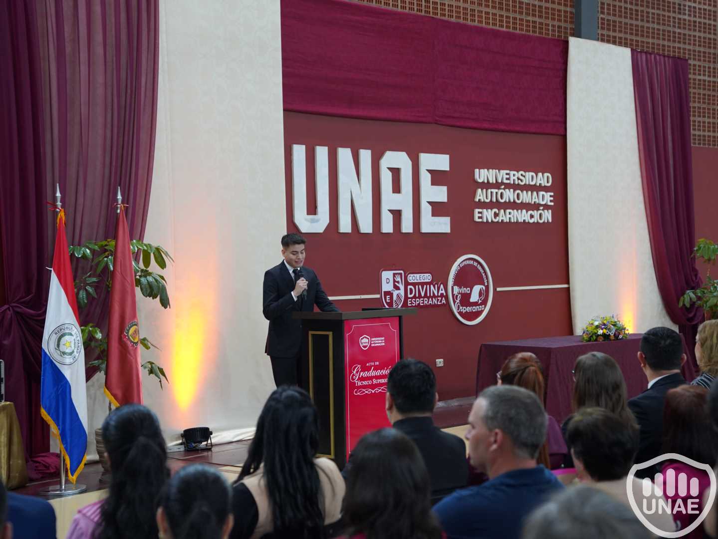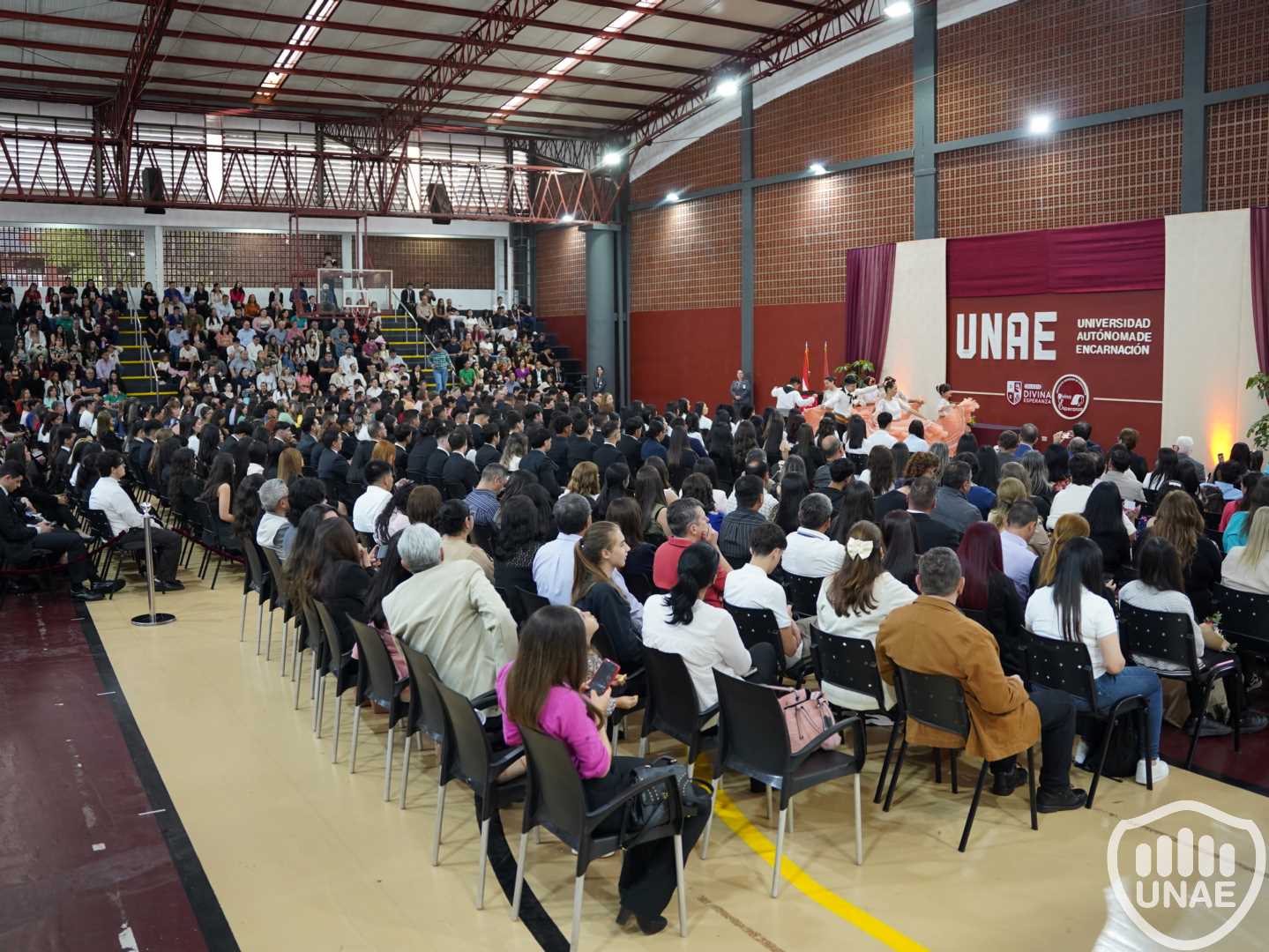 El jueves 16 de octubre de 2025, en el Polideportivo UNAE SPORTS la Universidad Autónoma de Encarnación realizó el acto de graduación del Nivel Técnico Superior, correspondiente a las modalidades presencial y online, con la participación de estudiantes provenientes de diversos puntos del país. La ceremonia tuvo lugar en el Campus Urbano de la Universidad, en un ambiente de orgullo y celebración por los logros alcanzados.