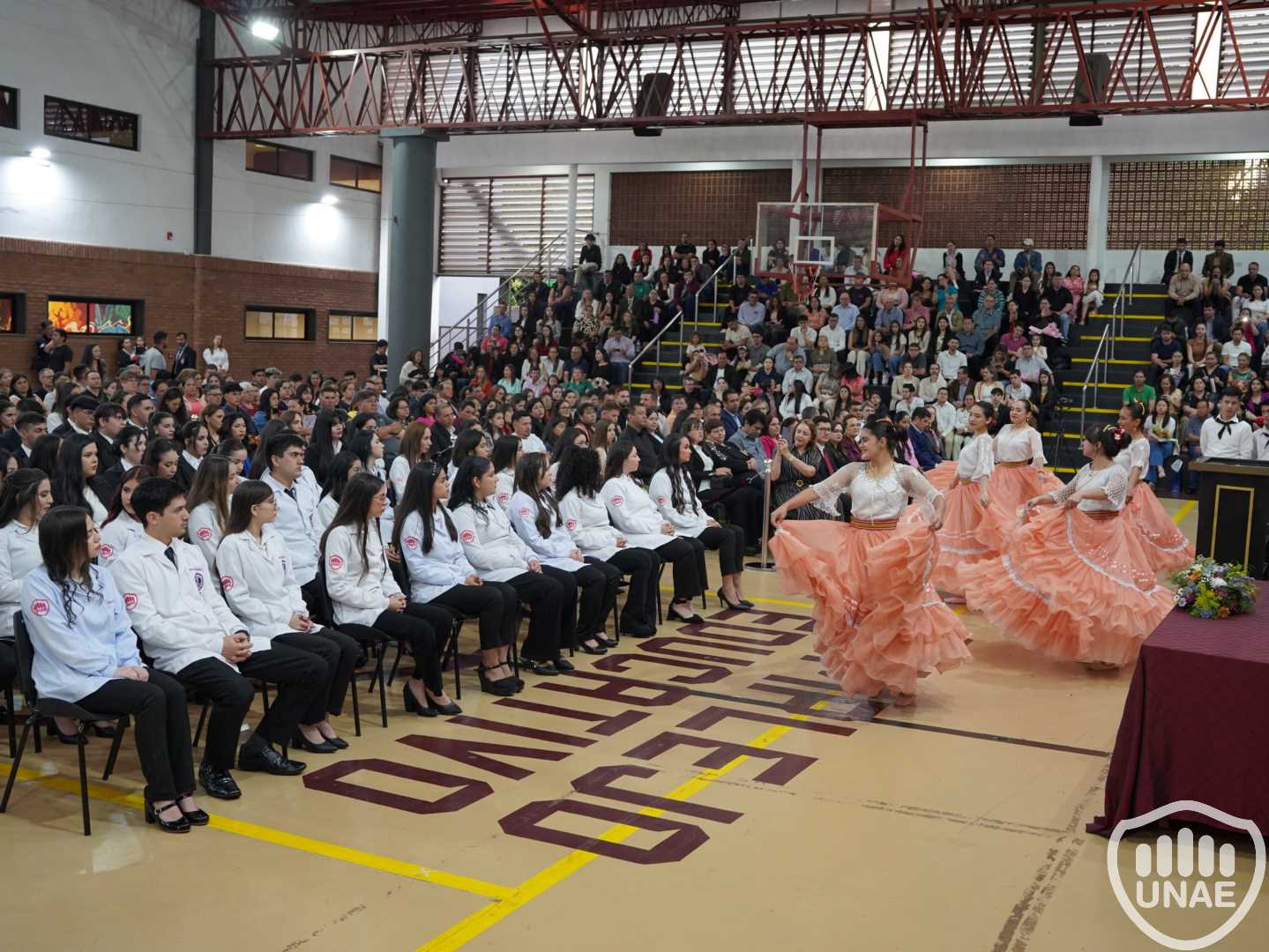 El acto contó además con una destacada presentación artística a cargo del Ballet Ko’ẽju Jeroky de la UNAE, que interpretó la obra “Praderas del Paraguay”, con música del arpista Ismael Ledesma.