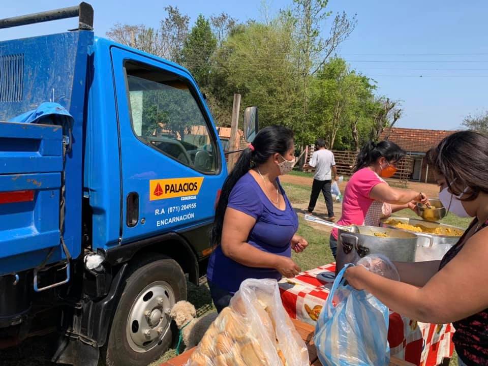 En el Barrio Sartia de Encarnación se ofreció un almuerzo comunitario para 300 personas y se entregaron 40 kits de víveres.