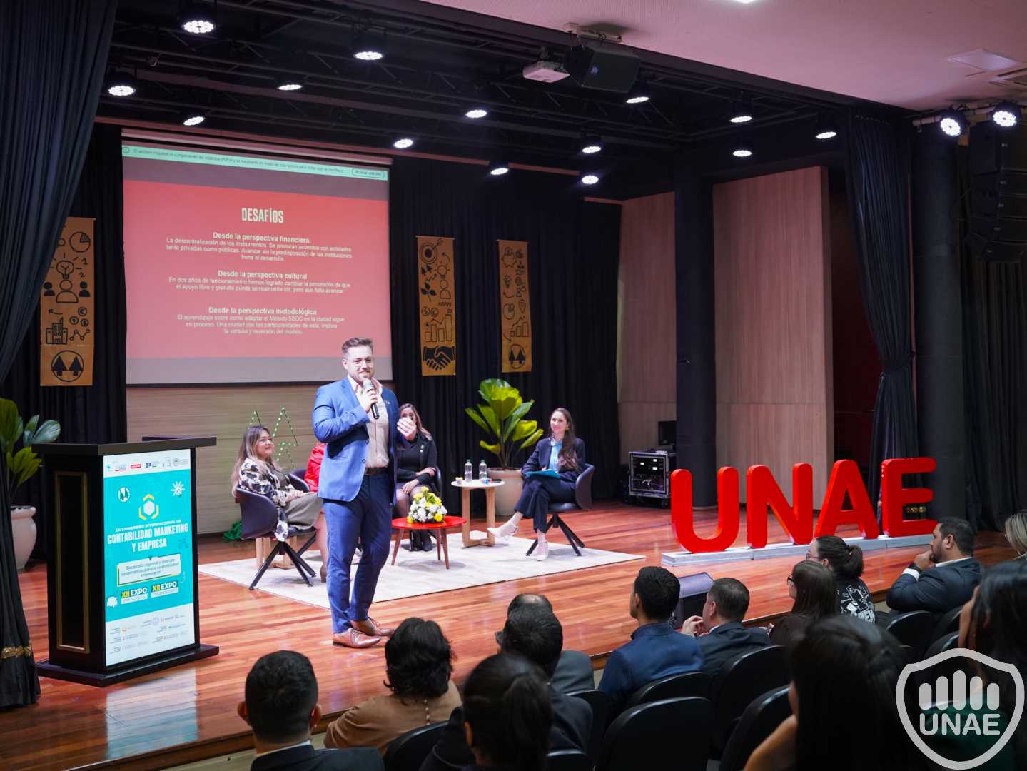 Con más de 800 participantes, culminó con éxito el XII Congreso Internacional de Contabilidad, Marketing y Empresa con el lema “Desarrollo regional y alianzas cooperativas para la sostenibilidad empresarial”. Durante dos jornadas intensas, el evento reunió a destacados profesionales de Brasil, Argentina y Paraguay, junto con empresas líderes de la región y del país, para reflexionar sobre los desafíos y oportunidades del desarrollo sostenible y la cooperación intersectorial.