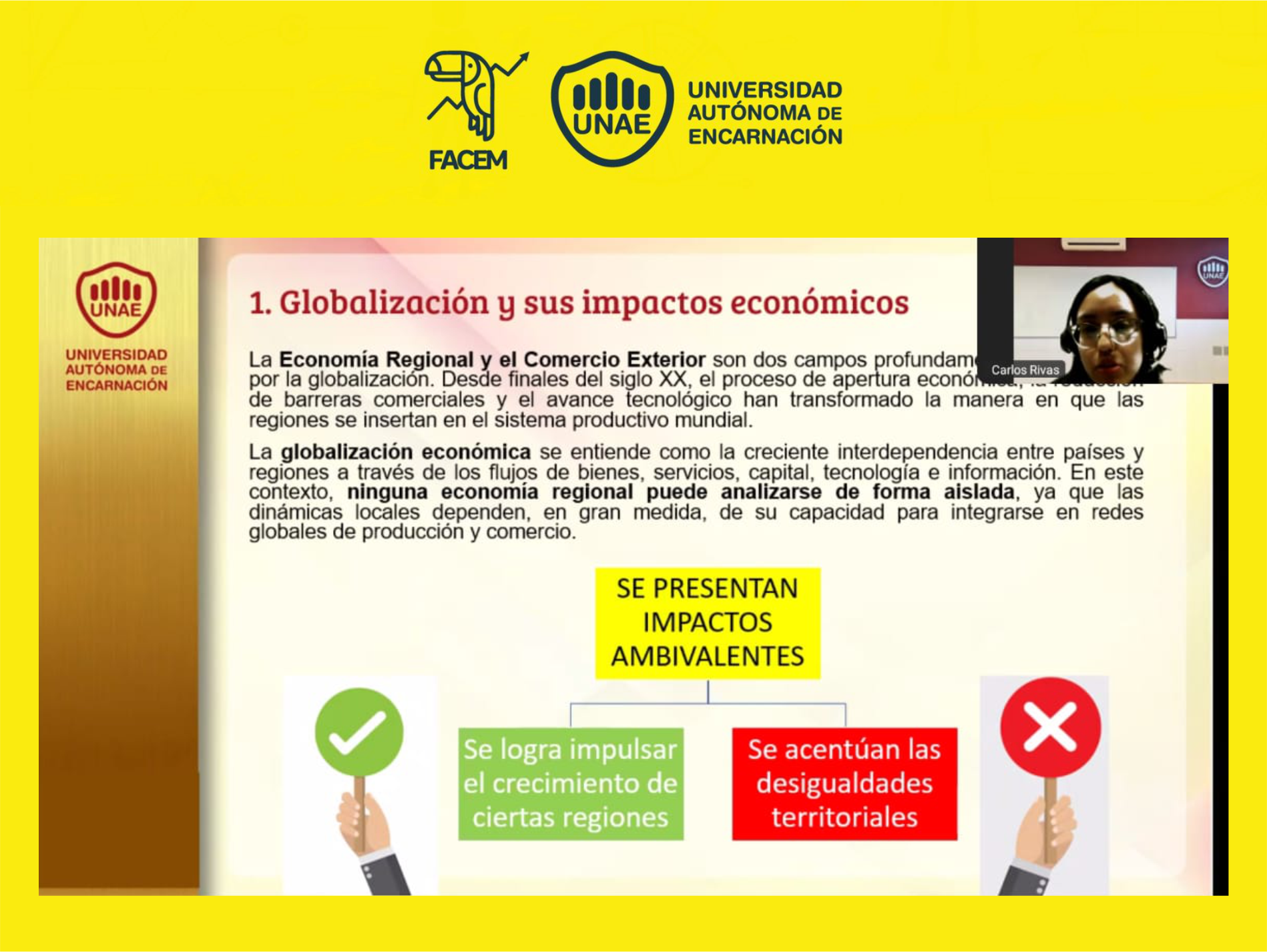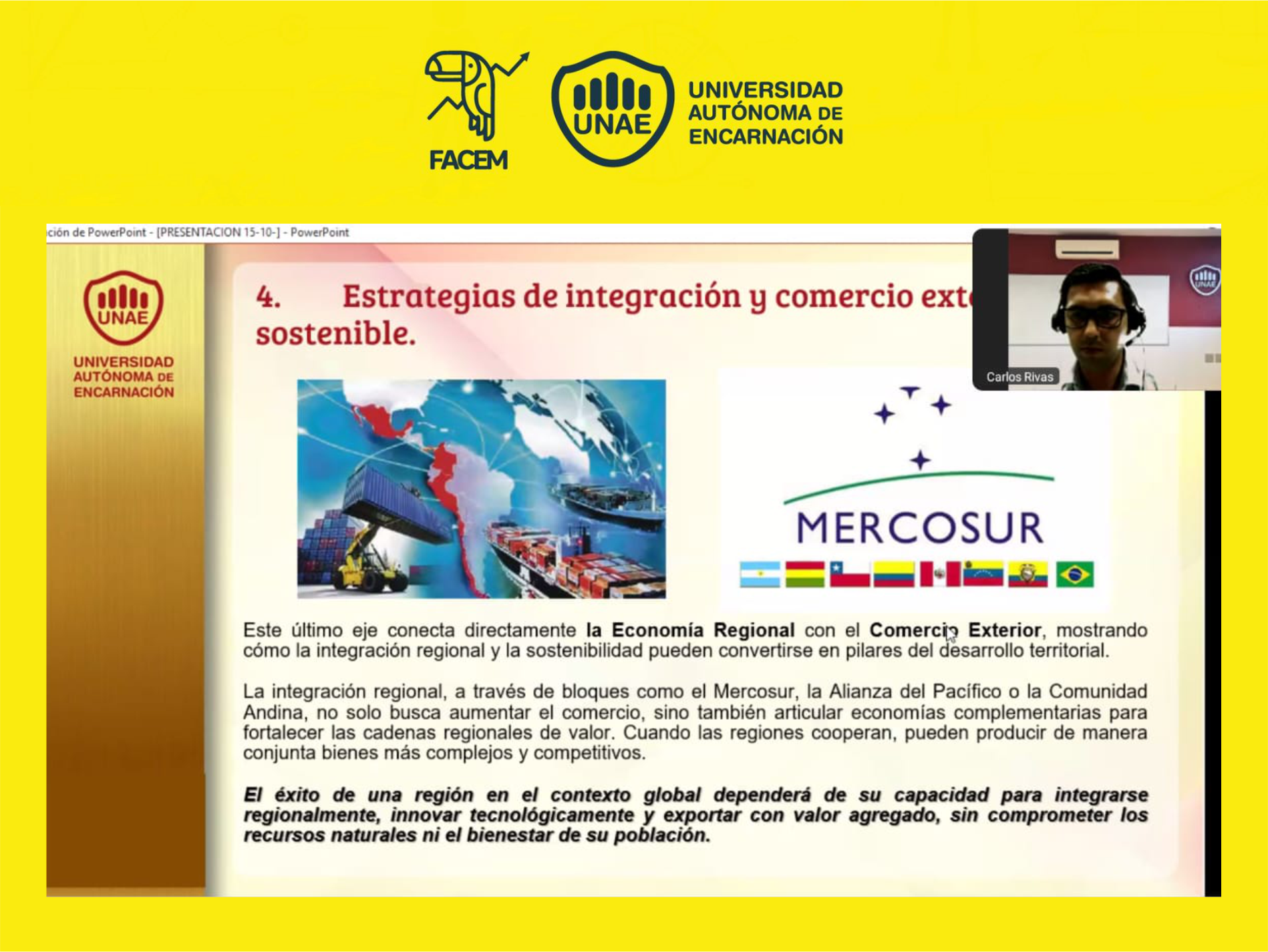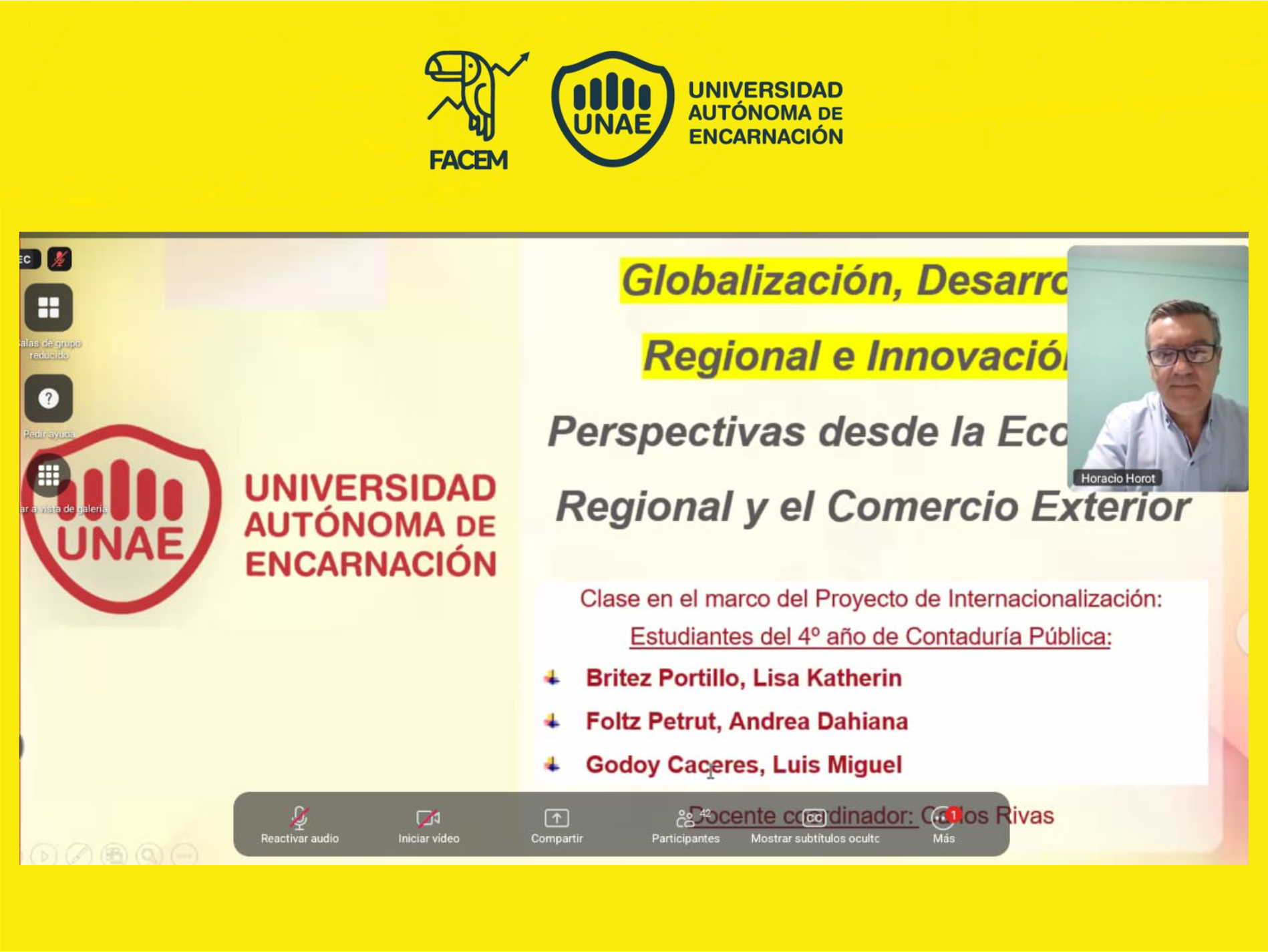 En el marco de las acciones de vinculación académica internacional y fortalecimiento de la formación global, la Facultad de Ciencias Empresariales de la Universidad Autónoma de Encarnación (UNAE) lleva adelante un conjunto de actividades que integran la internacionalización del aprendizaje como eje estratégico de su proyecto educativo.