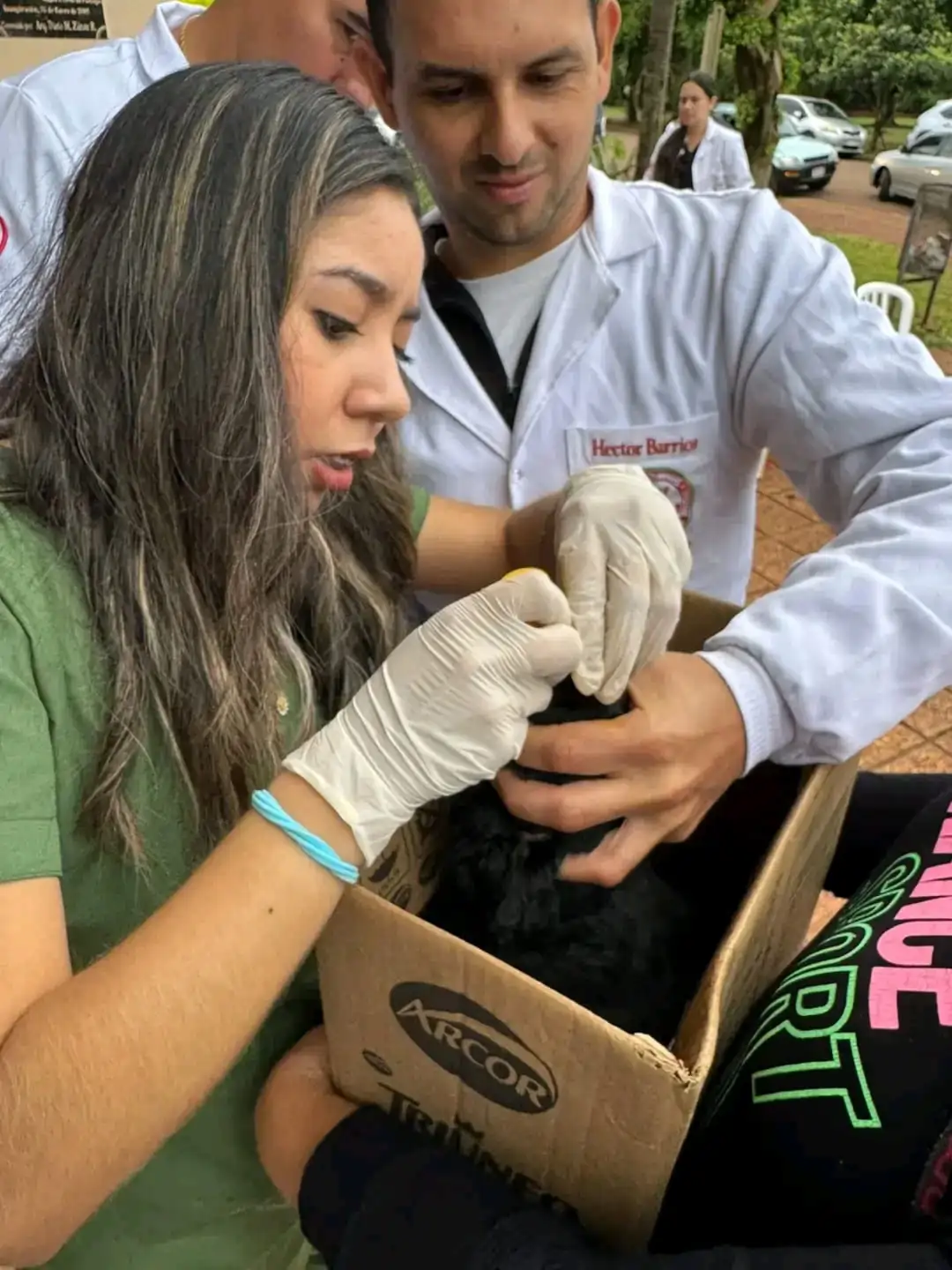 Continuando con las acciones, el domingo 26 de octubre, se desarrolló una nueva jornada en el Distrito de Cambyretá, en el marco del convenio con la Municipalidad local. La actividad estuvo a cargo del Dr. Vet. Eduardo Villalba docente de Farmacología y Toxicología, contó con la presencia de la Mgter. Dra. Karen Aguirre y la participación de estudiantes del tercer año. En total, se realizaron 100 aplicaciones de vacunas antirrábicas y tratamientos de desparasitación a caninos y felinos, en beneficio de la comunidad.