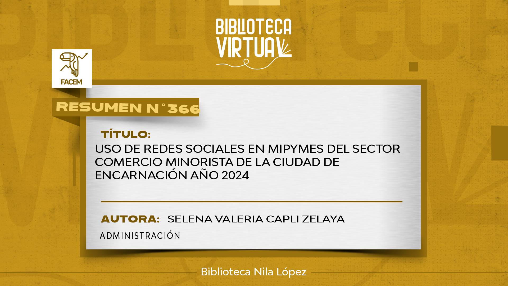 N°: 366CARRERA: ADMINISTRACIÓNAÑO: 2024AUTORA: SELENA VALERIA CAPLI ZELAYA