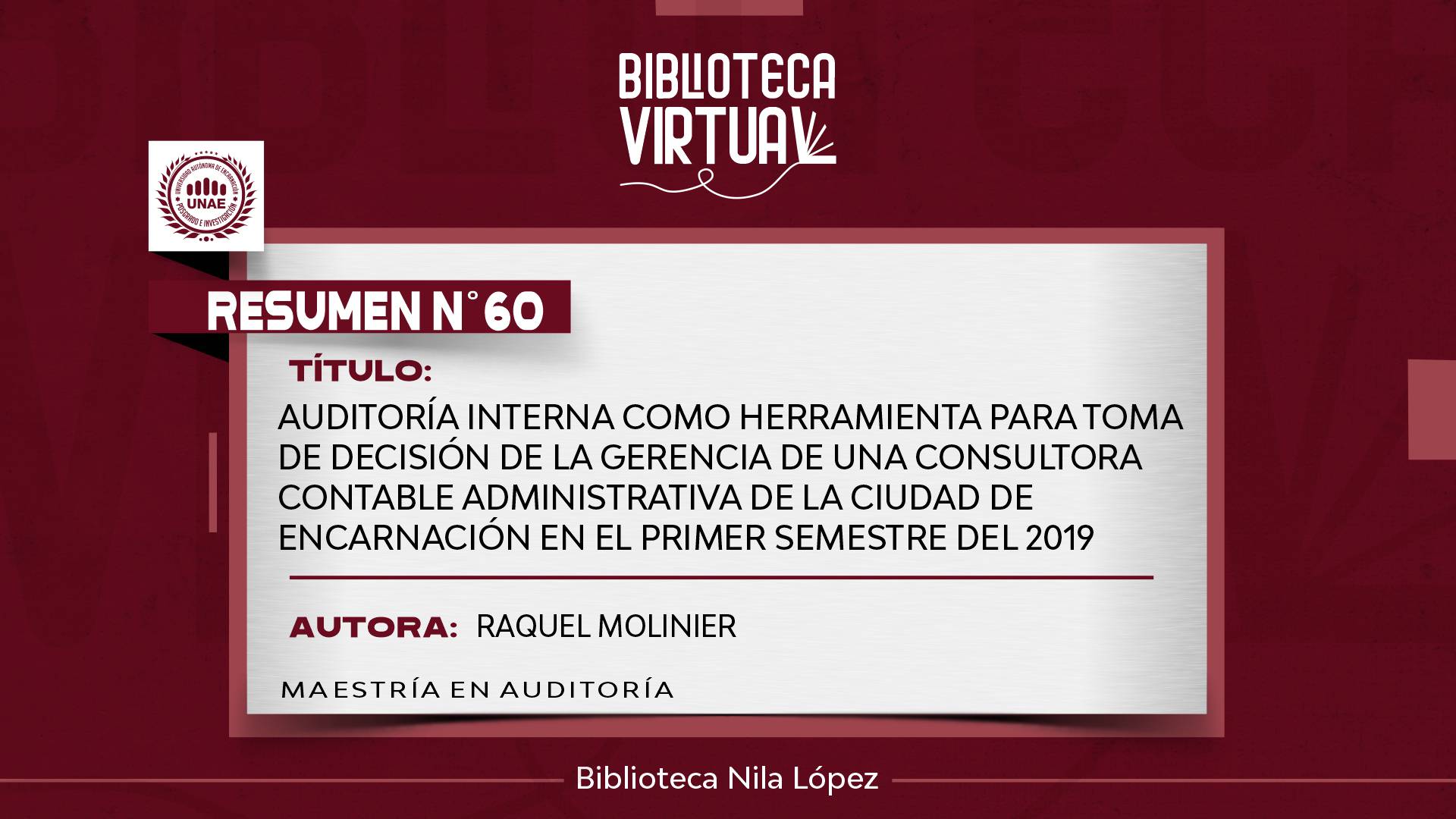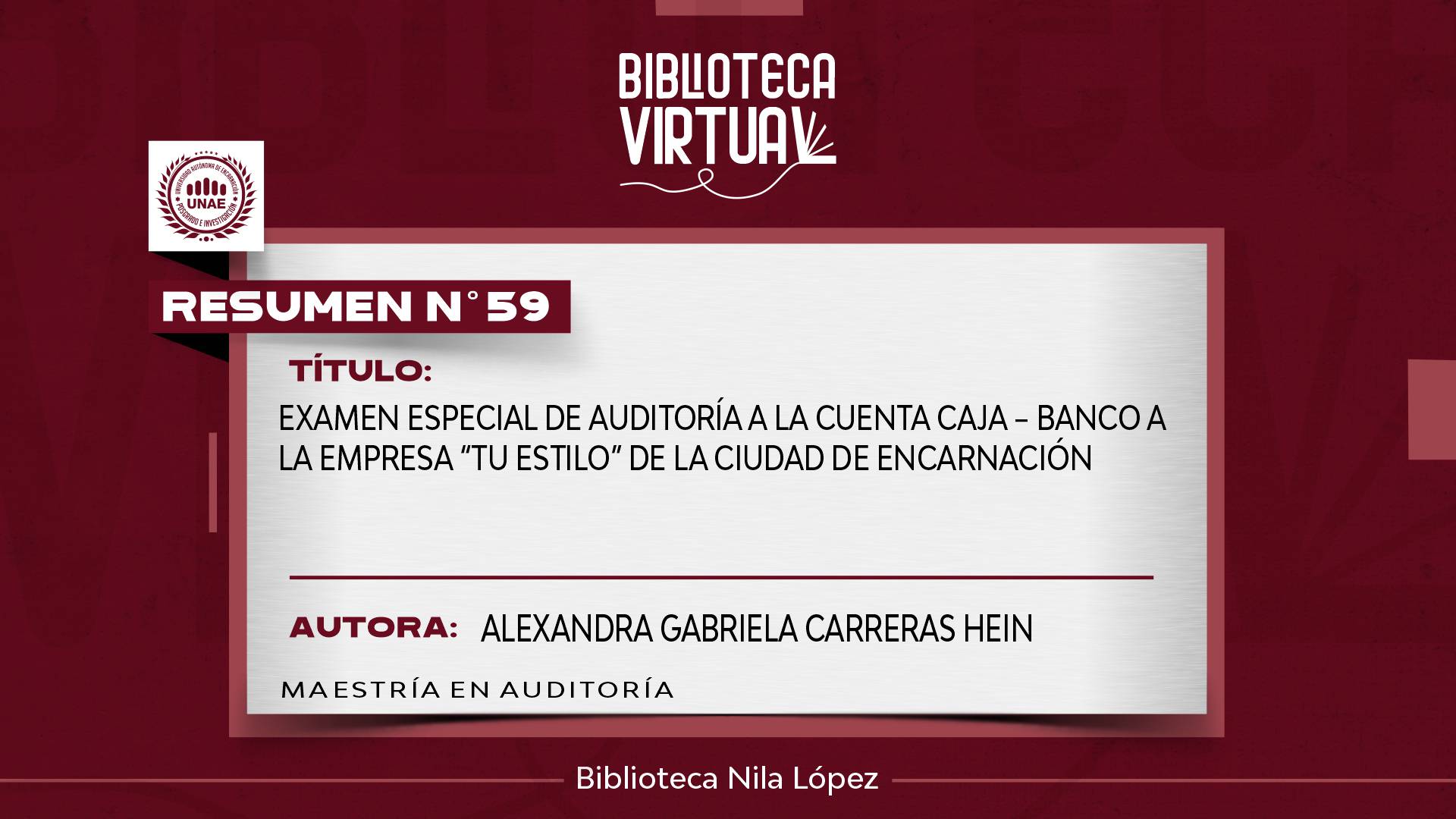 PROGRAMA DE POSGRADO: MAESTRÍA EN AUDITORÍA Y CONTROL