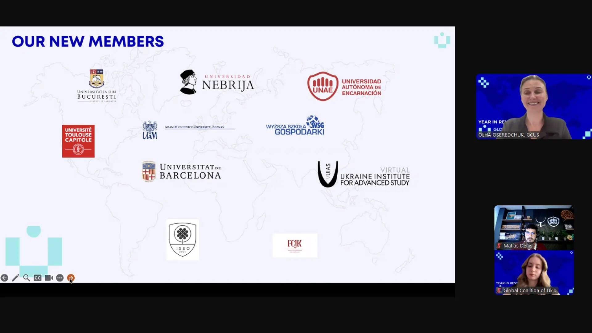 En representación de la Dra. Nadia Czeraniuk, Rectora de la UNAE, el 22 de diciembre de 2025, el Mag. Matías Denis participó en la reunión virtual en la cual se llevó a cabo la firma del Memorando de Cooperación por el cual la UNAE se compromete a trabajar con la Global Coalition of Ukrainian Studies en favor de la cultura ucraniana. Por parte de la Global Coalition of Ukranian Studies, la firma estuvo a cargo del Sr. Volodymyr Sheiko, Director General del Instituto Ucraniano.