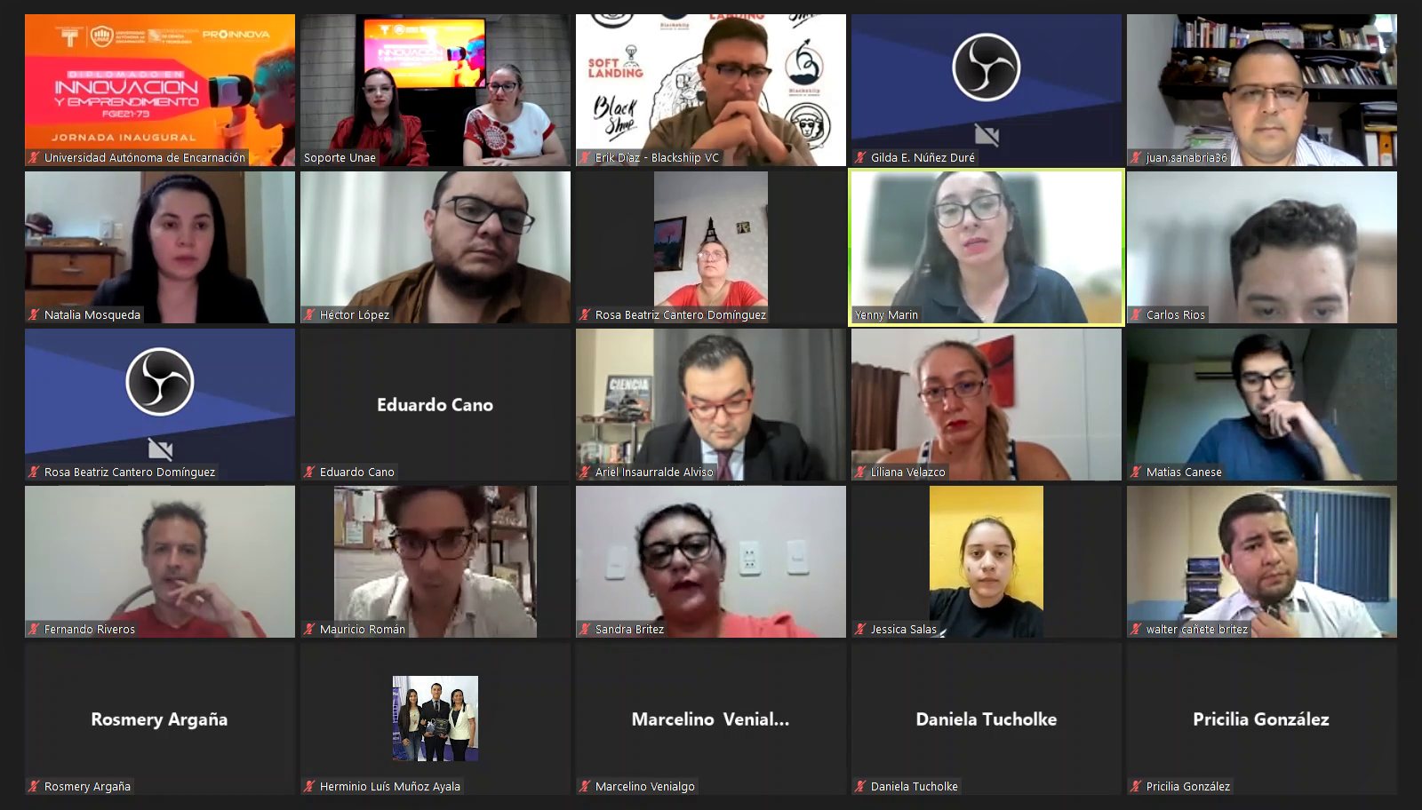 El viernes 10 de febrero, en modalidad virtual se realizó la jornada inaugural del Diplomado en Innovación y Emprendimiento FGIE21-7, programa de formación de la Universidad Autónoma de Encarnación (UNAE), cofinanciado por CONACYT en el marco del Programa de Innovación de Empresas paraguayas PROINNOVA.