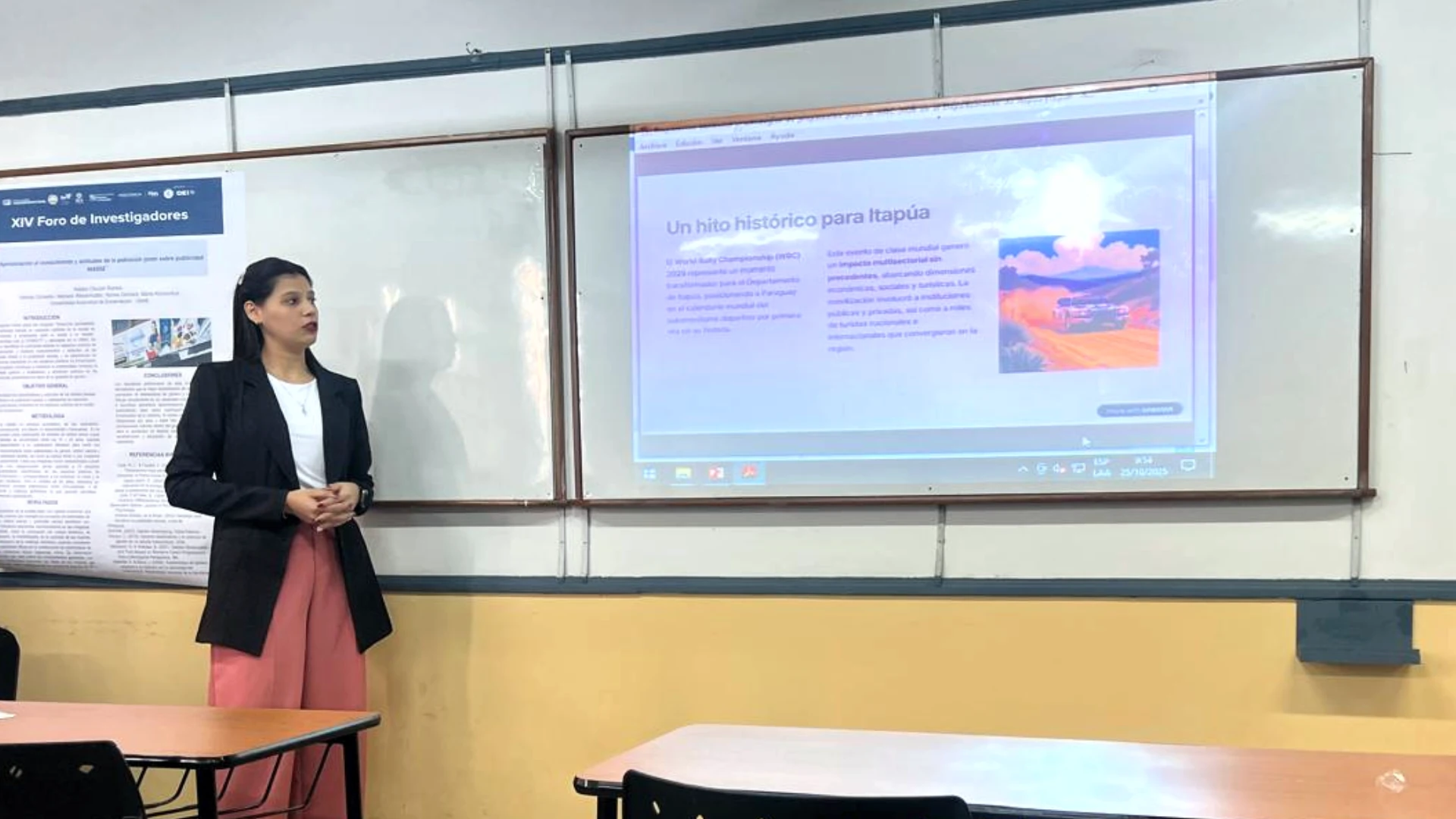 Los resultados preliminares del proyecto de investigación autofinanciado por la UNAE, titulado “Diagnóstico Territorial y Estrategias de Preparación para el WRC 2025 en el Departamento de Itapúa”, fueron presentados en el XIV Foro de Investigadores de la Universidad Iberoamericana de Paraguay (UNIBE), realizado del 20 al 25 de octubre de 2025.