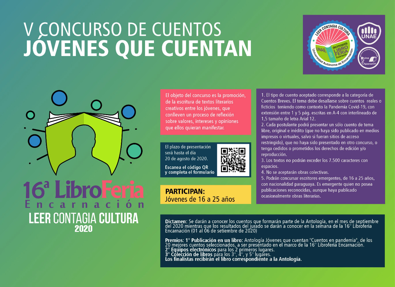 9. Dictamen: Se darán a conocer los cuentos que formarán parte de la Antología, en el mes de septiembre del 2020 mientras que los resultados del jurado se darán a conocer en la semana de la 16° Libroferia Encarnación (01 al 06 de setiembre de 2020)