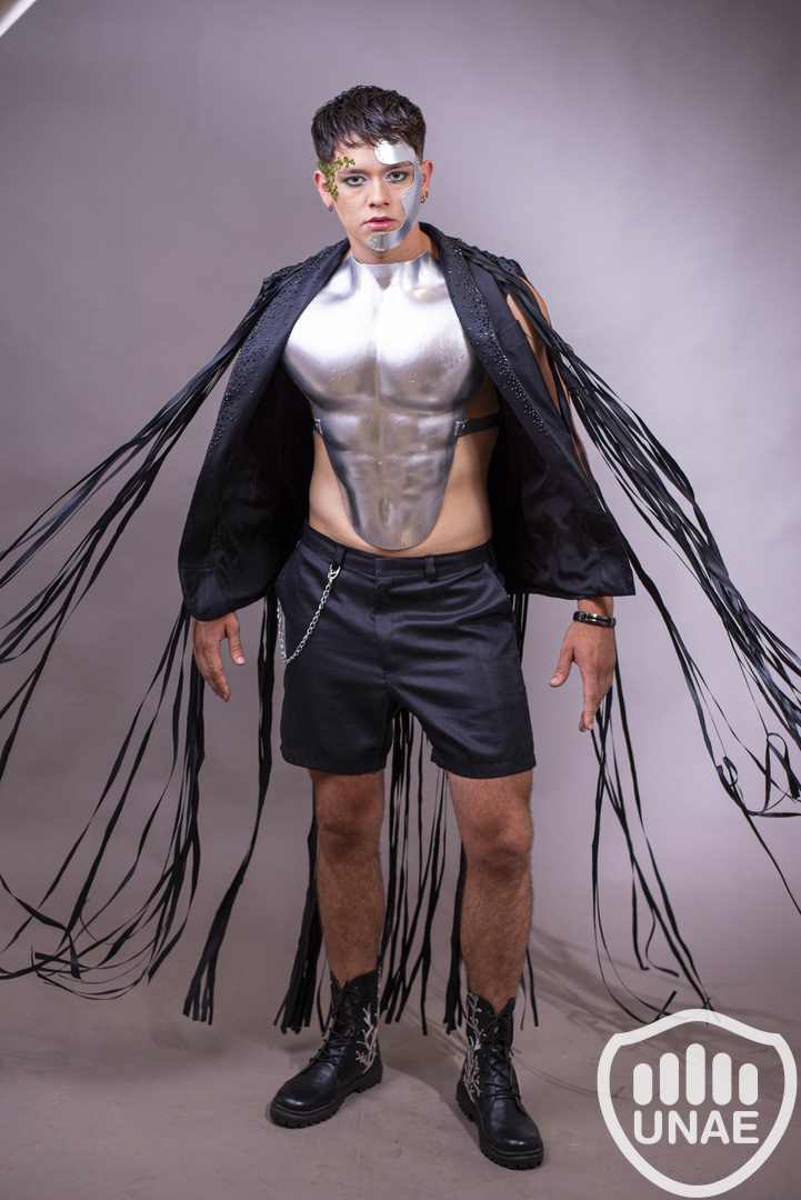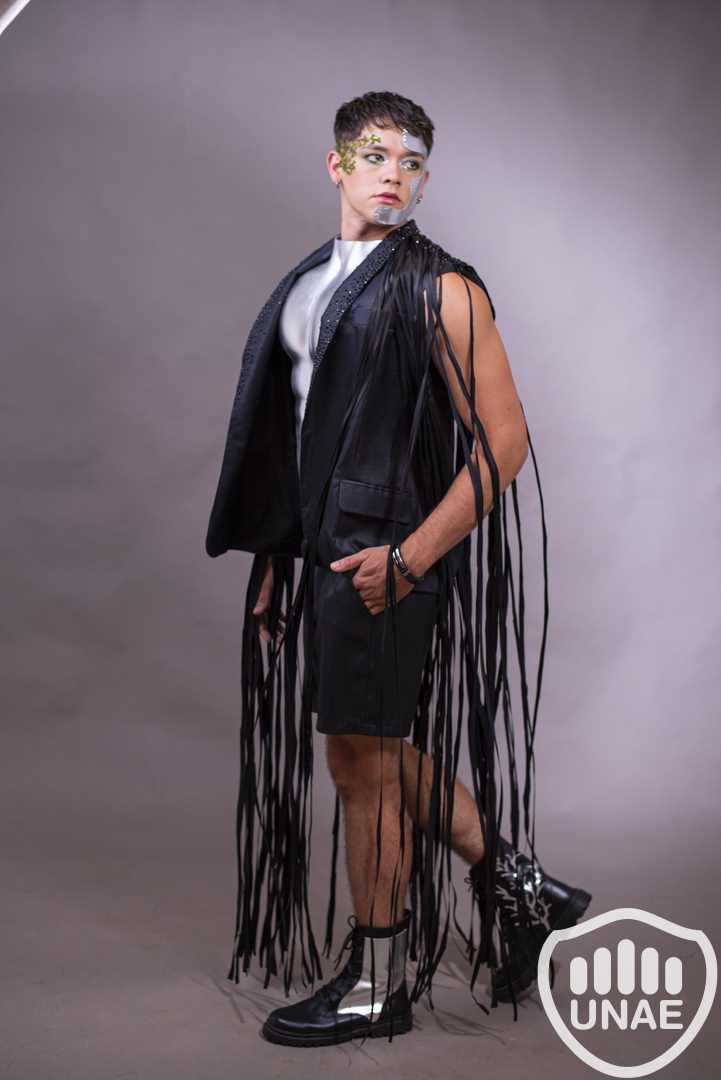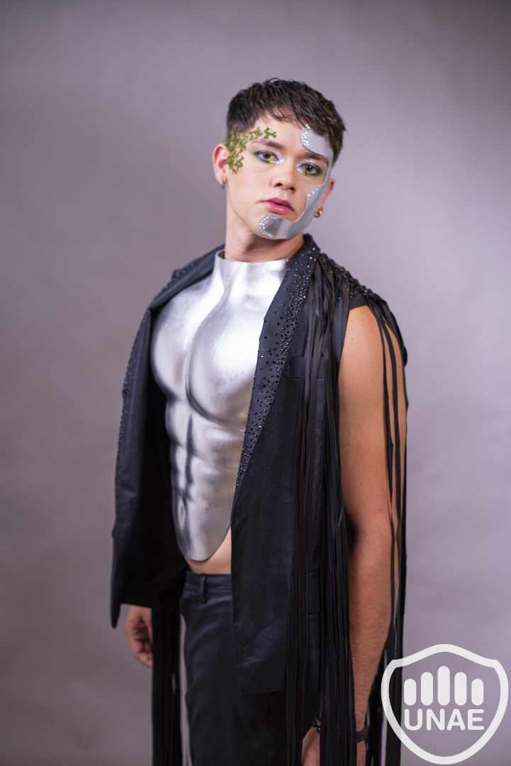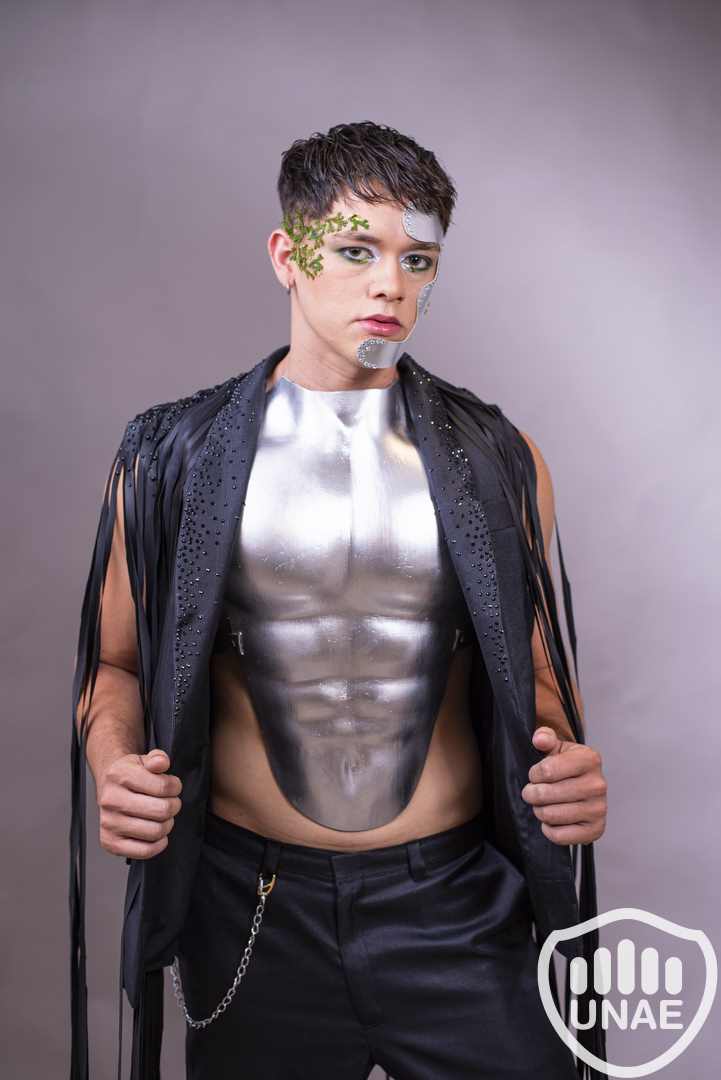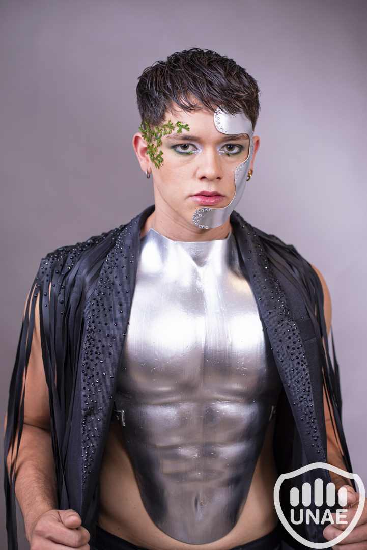 En el maquillaje artístico se visualiza plantas naturales y cuerina dándole el toque final ecovan (ecológico y vanguardista)