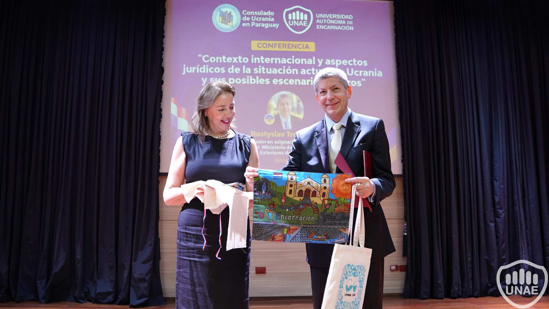 El viernes 15 de marzo de 2024, el Embajador llegado desde Ucrania brindó una importante conferencia en la UNAE bajo el título "Contexto internacional y aspectos jurídicos de la situación actual de Ucrania y sus posibles escenarios futuros"