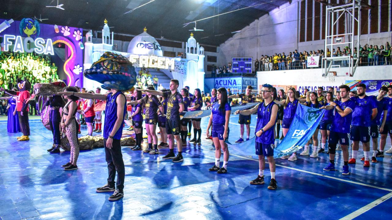 La noche inicio con la presentación de los equipos que estarán en competencia en la semana deportiva. Se presentaron así: el Instituto Superior de Educación Divina Esperanza-ISEDE, quienes fueron campeones del año 2021, la Facultad de Ciencias Empresariales-FACEM, la Facultad de Ciencias Jurídicas, Humanas y Sociales, la Facultad de Ciencias de la Salud-FACSA, la sede de la UNAE en Colonias Unidas y la Facultas de Ciencias, Arte y Tecnología-FACAT.