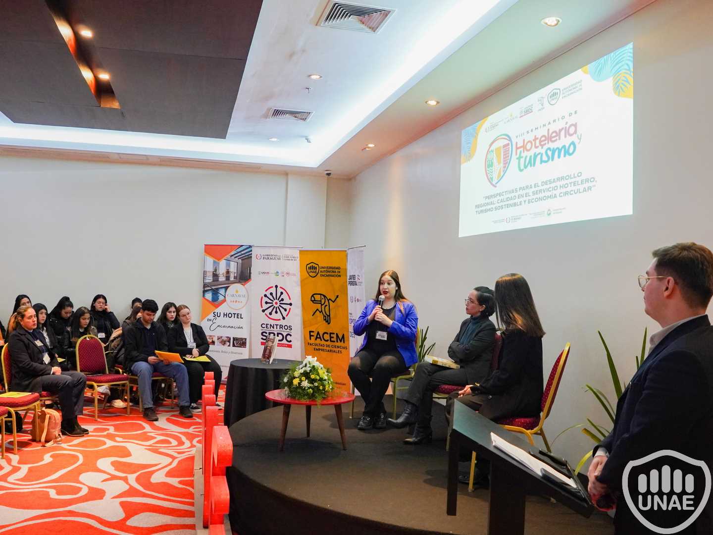 El miércoles 25 de junio, se celebró con éxito el VIII Seminario de Hotelería y Turismo en el salón de eventos del Carnaval Hotel Casino. Bajo el lema "Perspectivas para el desarrollo regional: Calidad en el servicio hotelero, turismo sostenible y economía circular", el evento contó con la colaboración del Centro SBDC Encarnación (Small Business Development Centers), el Carnaval Hotel Casino y la Secretaría Nacional de Turismo (Senatur) Itapúa.