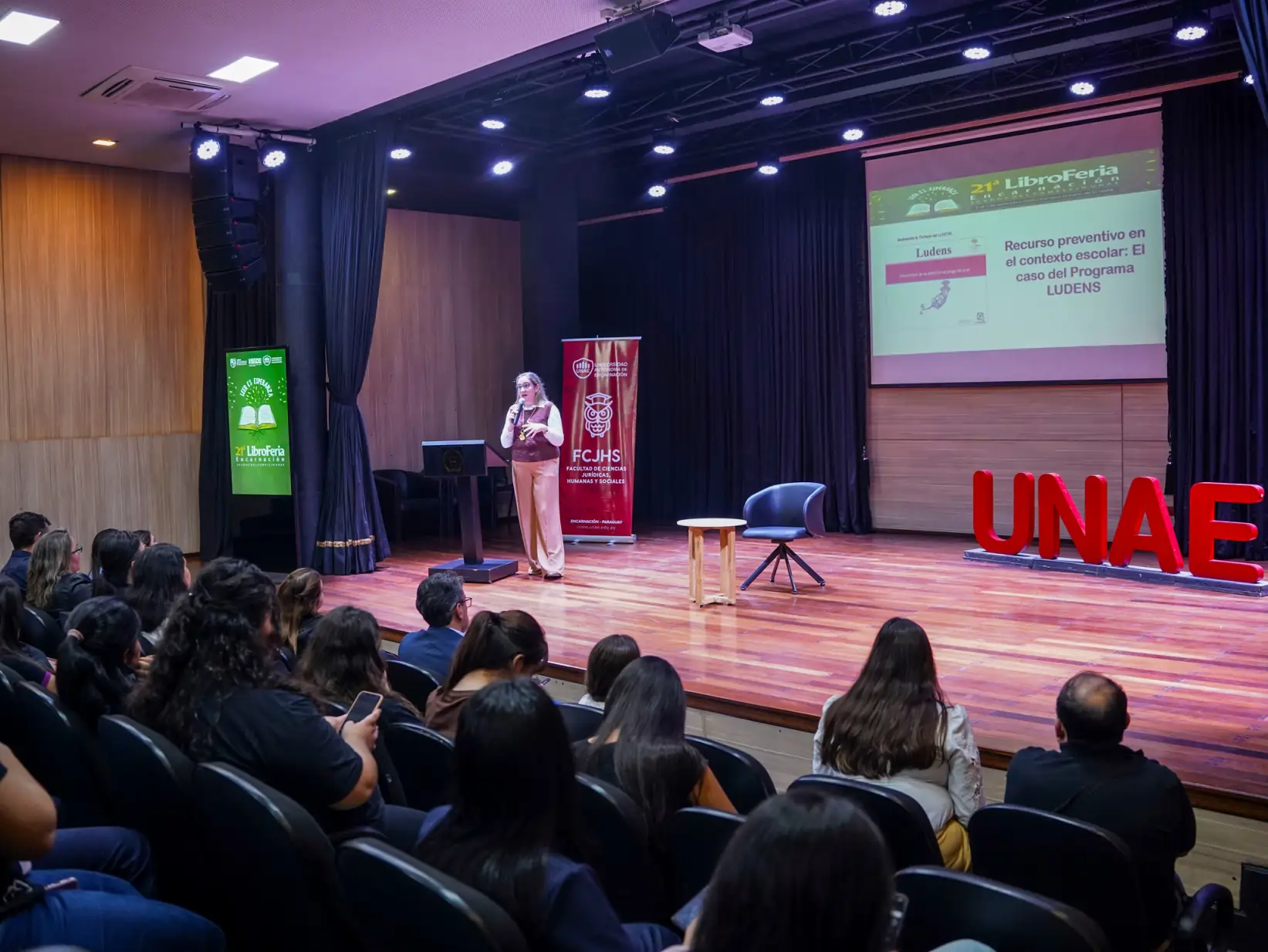 En el marco de la 21ª Libroferia Encarnación “Leer es Esperanza”, la carrera de Psicopedagogía de la Facultad de Ciencias Jurídicas, Humanas y Sociales de la UNAE llevó adelante, el martes 2 de septiembre de 2025, la XVI Jornada de Psicopedagogía y Trabajo Social, en el Auditorio Central del Campus Urbano.