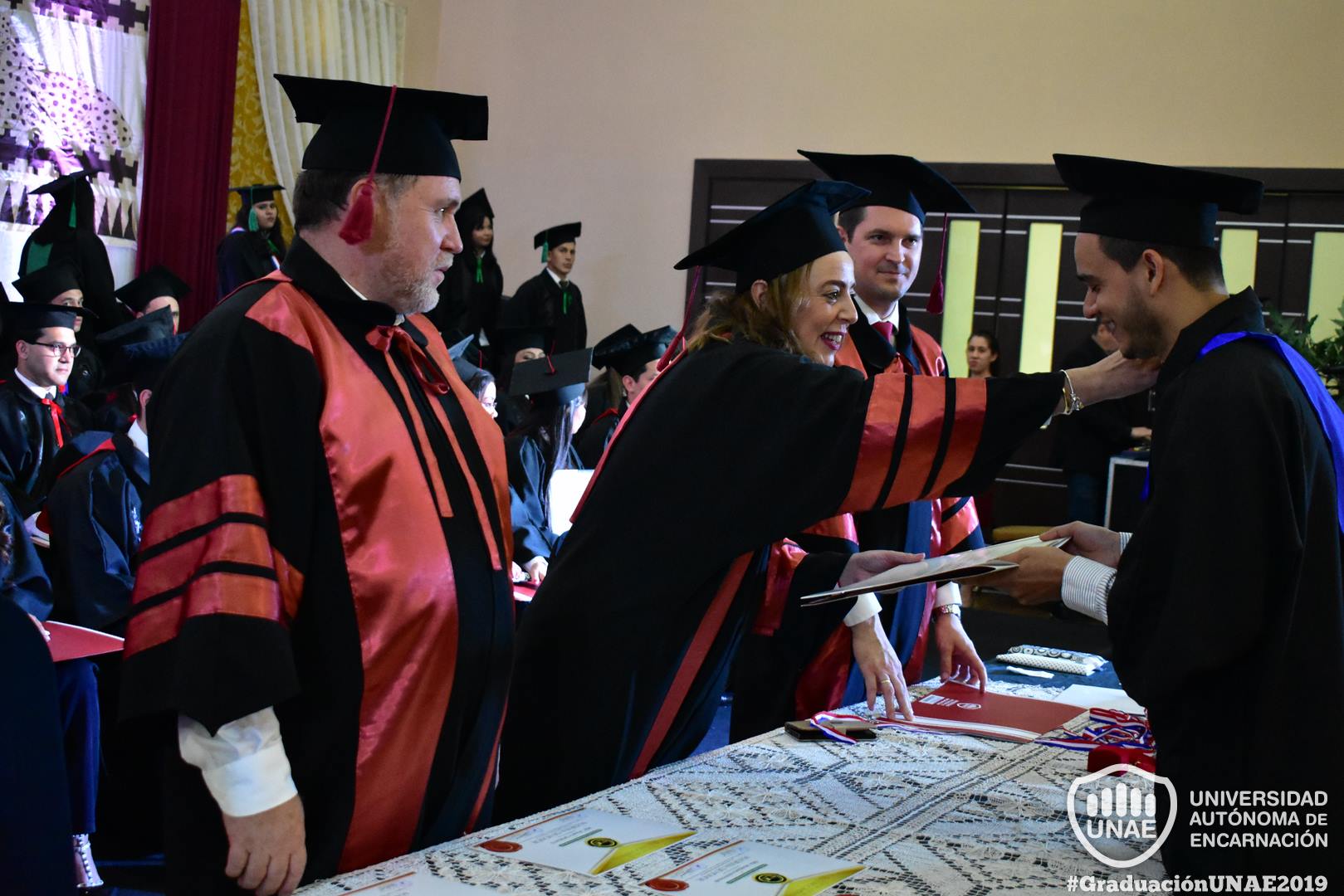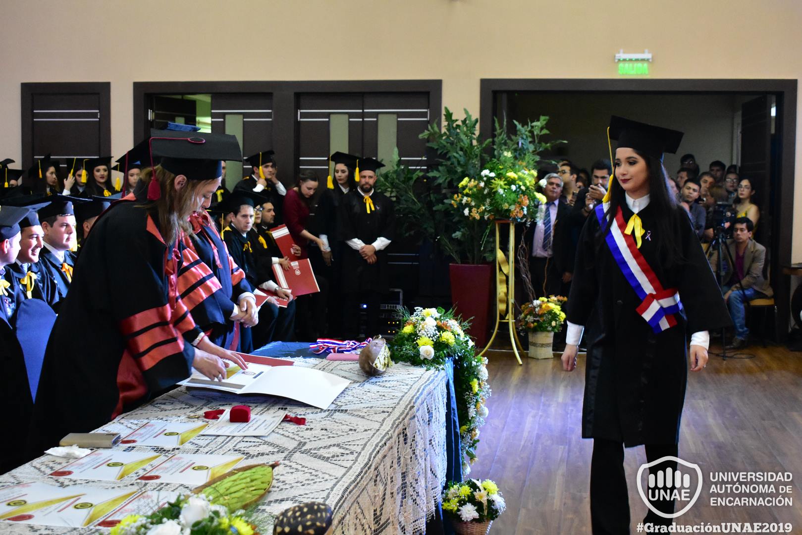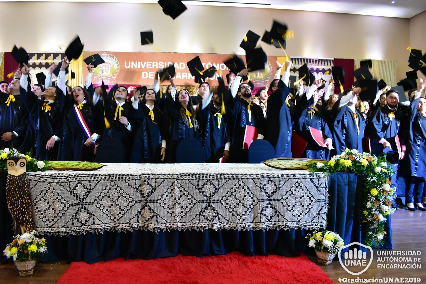 Este sábado 14 de diciembre, se realizaron las ceremonias de graduación de los egresados de los programas de grado y posgrado del Complejo Universidad Autónoma de Encarnación. Los actos se desarrollaron en el salón central del Hotel Awa.