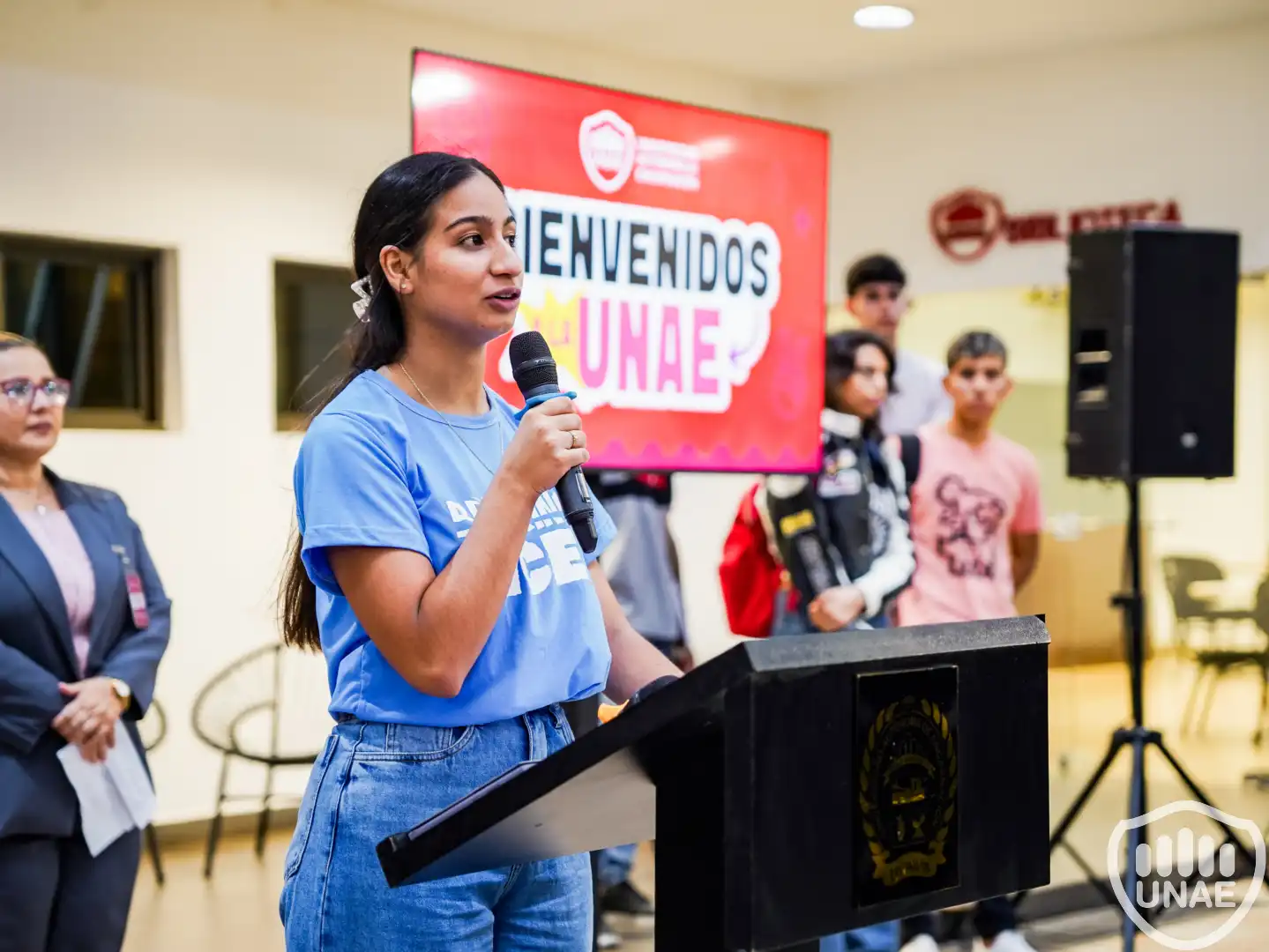 Posteriormente, Luján Cabrera, en representación del Consejo de Delegados de UNAE–ISEDE, compartió unas palabras dirigidas a los nuevos universitarios, destacando la experiencia de formación, participación y crecimiento que caracteriza a la comunidad UNAE.