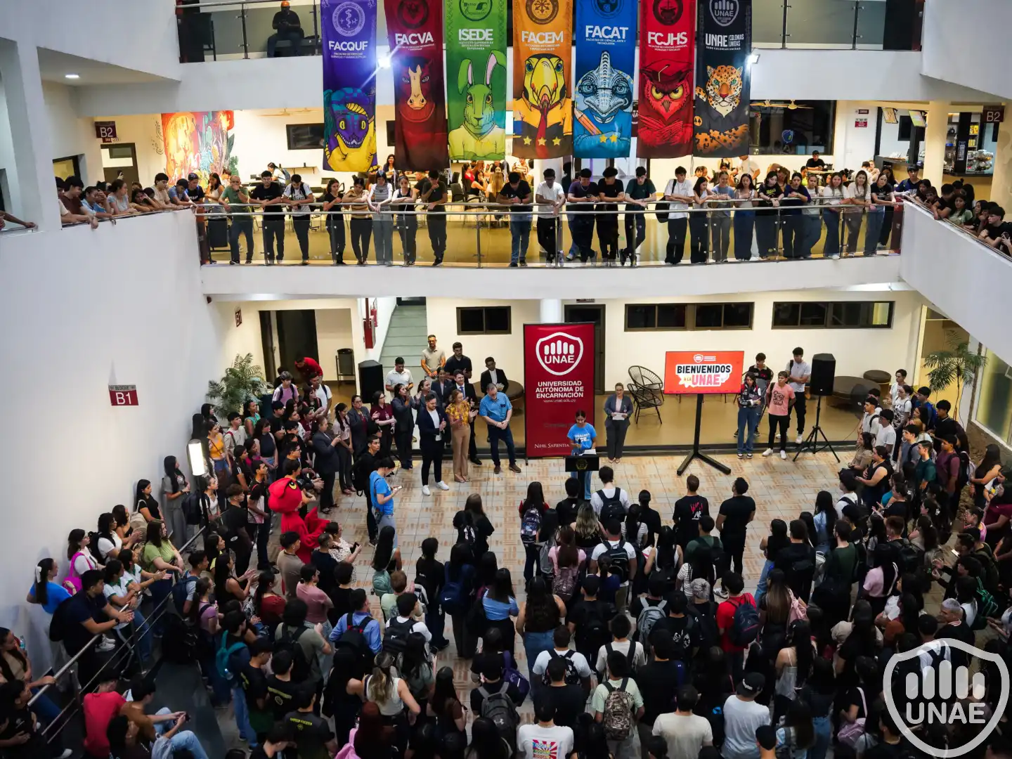 La Universidad Autónoma de Encarnación - UNAE dio la bienvenida a los estudiantes de primer año de todas las carreras del Complejo UNAE en una jornada especial de inicio de clases, realizada el miércoles 4 de marzo, que combinó momentos institucionales, palabras de motivación y actividades de integración.