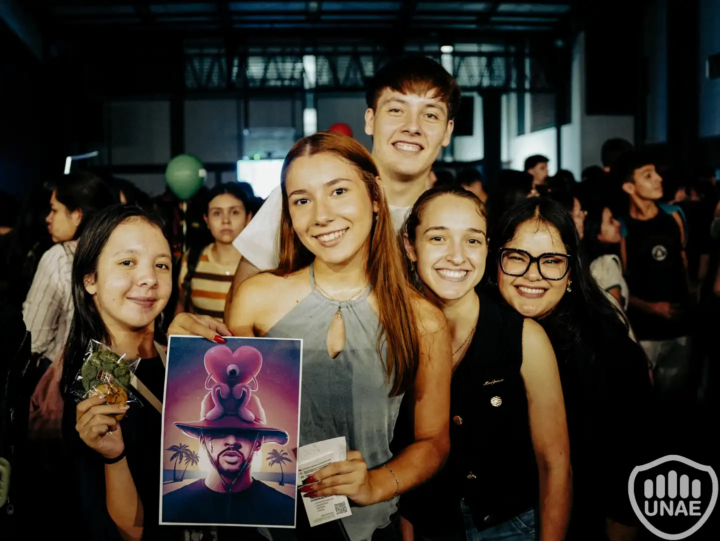 El evento incluyó música con DJ, juegos, zonas de conversación guiadas por estudiantes anfitriones, feria, espacios para fotografías, glitter, además de bebidas y snacks, generando un ambiente dinámico y amigable para fomentar la integración.