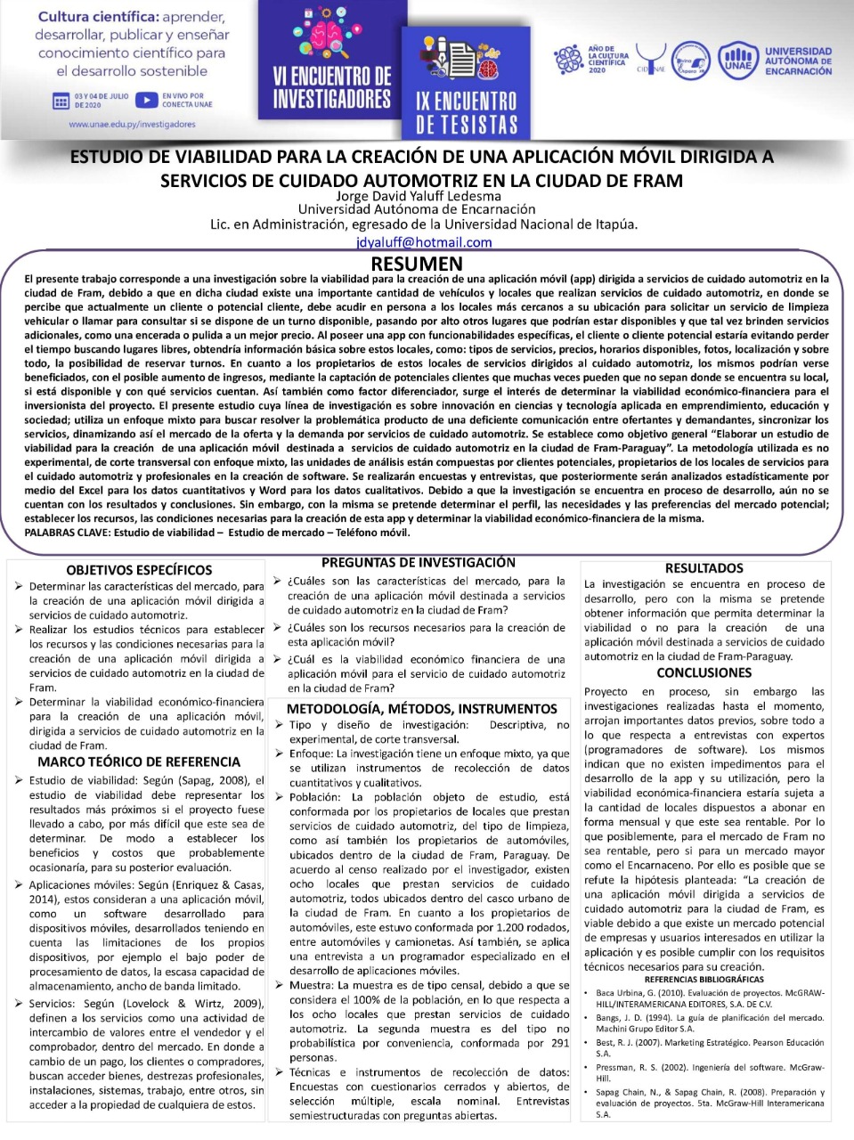 • “Estudio de viabilidad para la creación de una aplicación móvil dirigida a servicios de cuidado automotriz en la ciudad de Fram", por Jorge David Yaluff Ledesma (Universidad Autónoma de Encarnación)