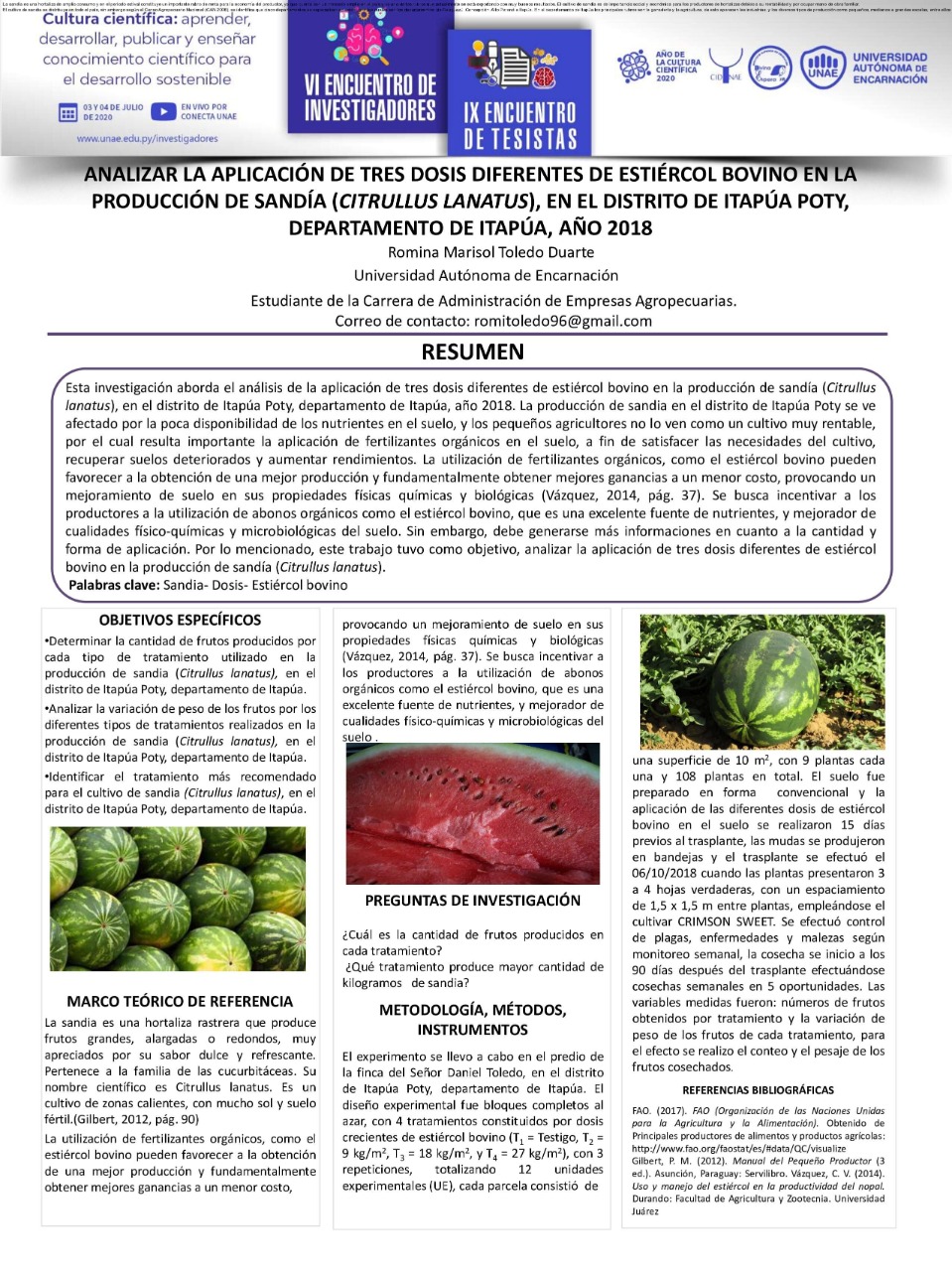 • “Diagnóstico del proceso de control de inventario de una empresa dedicada al rubro comercial ubicado en la Feria Municipal (La Placita) de Encarnación en el primer semestre del año 2020", por Viviana Octavo Gaona (Universidad Autónoma de Encarnación).