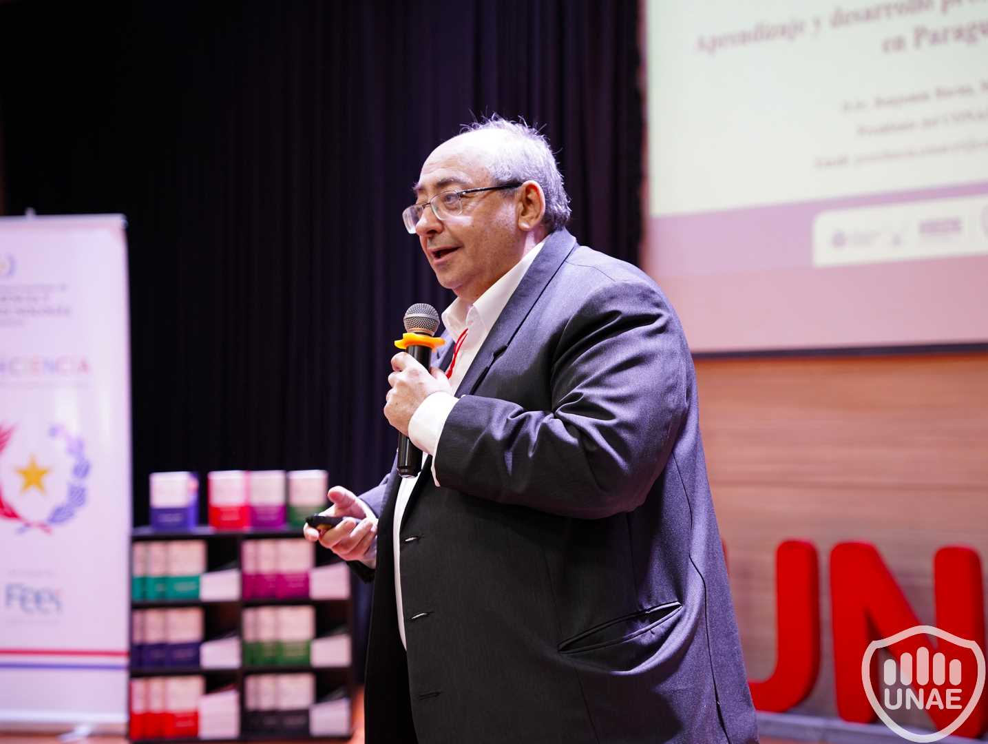 También se llevó a cabo un panel de apertura sobre “Aprendizaje y ciencia para la generación de conocimiento innovador y sostenible”, que contó con la participación del Dr. Barán, del Dr. Luis Ortiz (Investigador del PRONII nivel III y miembro de la Sociedad Científica del Paraguay) y la Dra. Nadia Czeraniuk (Rectora UNAE).