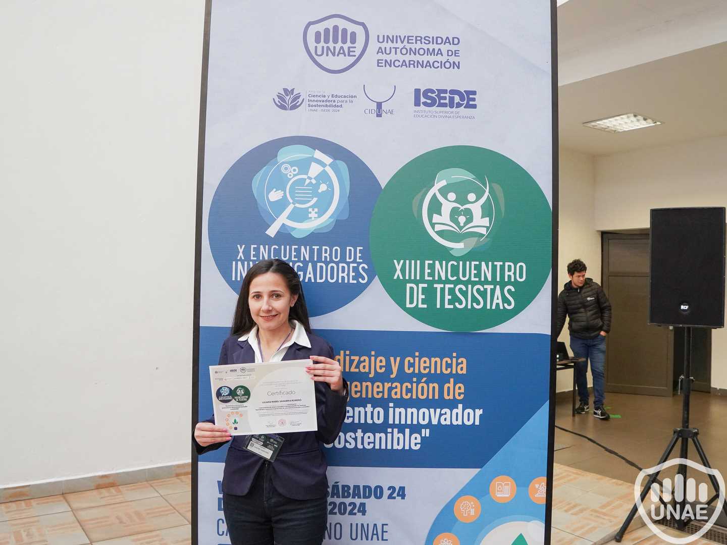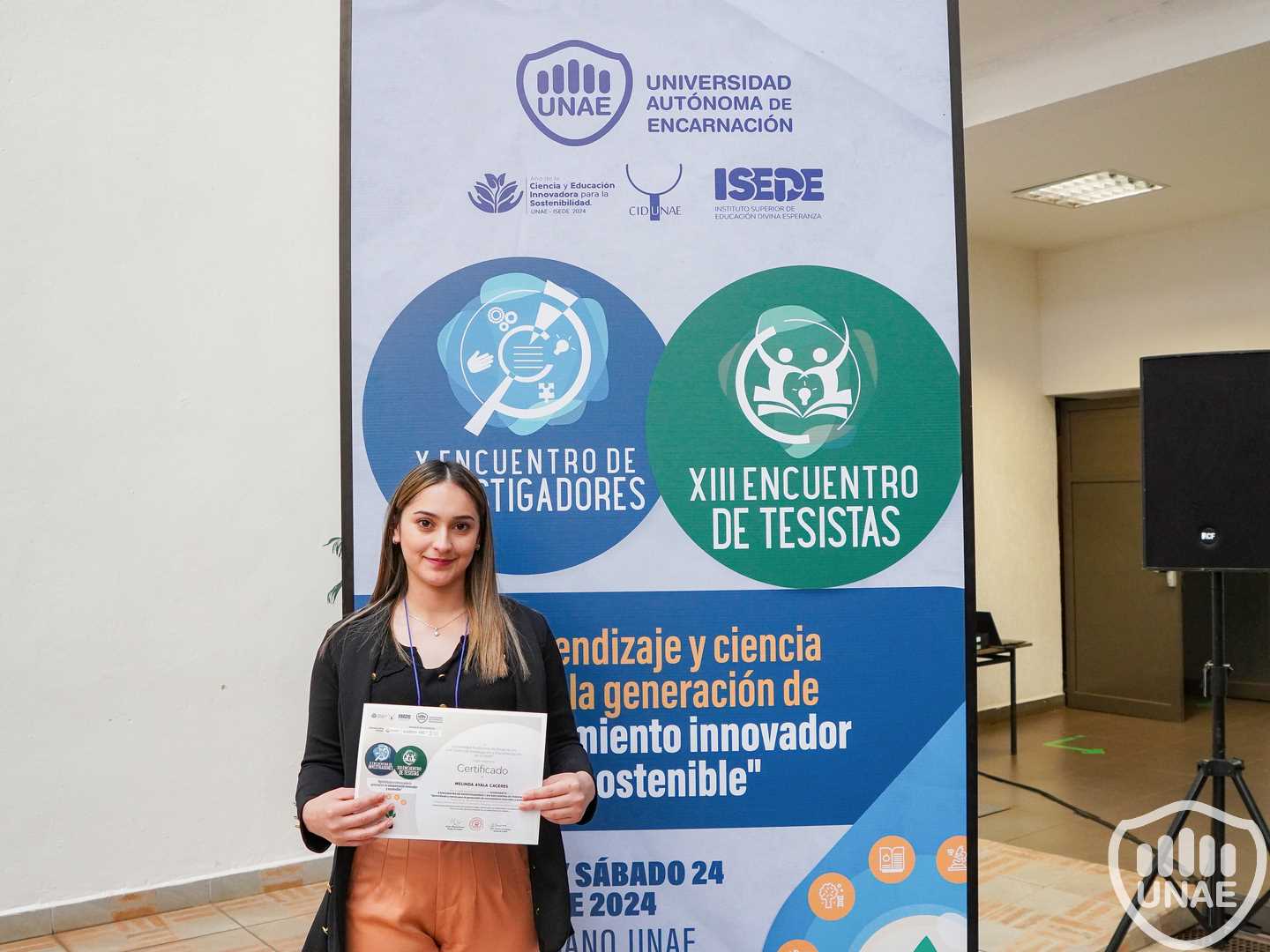• Tercer puesto para Liz Carolina Duette Ocampo, reciente egresada de la Lic. en Administración de Empresas de la UNAE con el tema “PERCEPCIÓN SOBRE LA INVESTIGACIÓN CIENTÍFICA POR LAS MIPYMES DE LA CIUDAD DE ENCARNACIÓN AÑO 2024”.